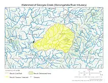 Watershed of Georges Creek (Monongahela River tributary) in Fayette County, Pennsylvania