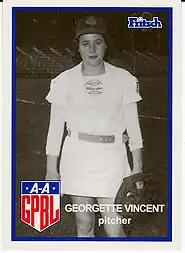 Georgette Vincent [Mooney] (July 5, 1928 – December 4, 1980) was a pitcher who played in the All-American Girls Professional Baseball League between the 1947 and 1954 seasons. Listed at 5 ft 3 in (1.60 m), 130 lb., Vincent batted and threw right-handed. She was born in Fall River, Massachusetts.[1][2]