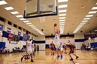Various athletic opportunities are offered by the school. Students can participate in four varsity team sports, potato chip eating contests, and video game nights.[24][25] Sports offered at the varsity level include boys' basketball, girls' basketball, boys' soccer and girls' volleyball.[26] Wally Fox has been the athletic director since 1975.[27]