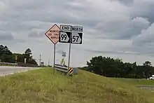 In 1940, the northern terminus of the southern segment was shifted eastward to a southwest–northeast routing. Also, the western terminus of the central segment was shifted south-southwest to connect with SR 32 at US 25/US 341/SR 27 north-northwest of Brunswick. At the same time, an unnumbered road was built between Sterling to a point south-southwest of Darien.[13][14] At the end of the year, a western segment of SR 99 was designated from an intersection with SR 32 east of Alma, east-northeast to SR 121 north of Bristol, and east to SR 38 southwest of Jesup.[15][16] The next year, the southern segment was under construction. The central segment was indicated to be "on system–not marked or maintained". The Valona–Eulonia segment of the northern segment had completed grading, but was not surfaced.[17][18] In 1942, the unnumbered road northeast of Sterling was indicated to be "on system–not marked or maintained".[18][19] The next year, the entire length of all three segments of SR 131, and the unnumbered road, were redesignated as an extension of SR 99. SR 131 was moved to an alignment from South Newport to east-northeast of it. The entire length of this new segment had a completed hard surface.[19][20] By the end of 1946, the Darien–Eulonia segment was hard surfaced.[21][22] Three years later, a small portion southeast of Ludowici was hard surfaced.[23][24]