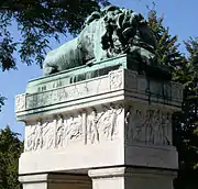 Scharnhorst, recalled to the king's headquarters, refused a higher post but became chief of staff to Blücher, in whose vigour, energy, and influence with the young soldiers he had complete confidence. Russian Prince Wittgenstein was so impressed by Scharnhorst that he asked to borrow him temporarily as his chief of staff, and Blücher agreed. In the first battle, Lützen or Gross-Görschen (2 May 1813), Prussia suffered defeat, but a very different defeat from those Napoleon had hitherto customarily inflicted. The French suffered significant casualties and, due in part to a severe shortage of cavalry, failed to follow up, rendering it an incomplete triumph. In this battle, Scharnhorst received a wound in the foot, not in itself grave, but soon made mortal by the fatigues of the retreat to Dresden, and he succumbed to it on 28 June 1813 at Prague, where he had travelled to negotiate with Schwarzenberg and Radetzky for the armed intervention of Austria. Shortly before his death he had received promotion to the rank of lieutenant-general. Frederick William III erected a statue in his memory, by Christian Daniel Rauch, in Berlin.[2] Scharnhorst was buried at the Invalidenfriedhof Cemetery in Berlin.