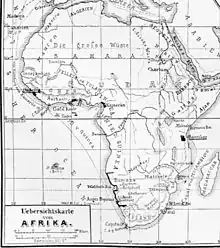 German interest in West Africa dated from the 17th and 18th centuries, when the Duchy of Courland and Brandenburg-Prussia established fortifications and trading posts in the region. After 1720 there was no German presence in West Africa until the middle of the 19th century, when German trading companies including C. Woermann, Jantzen & Thormählen, Wölber & Brohm and GL Gaiser became active on the West African coast.[1][2] German missionaries, such as the North German Missionary Society, were also present from the mid 19th century.[3][4]