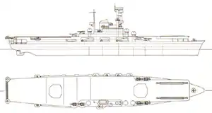 The converted ship would have been 180.4 m (591 ft 10 in) long at the waterline and 192.5 m (631 ft 7 in) long overall. She would have had a beam of 24.4 m (80 ft 1 in) and a draft of 5.6 m (18 ft 4 in) as designed. Her designed displacement would have been 11,400 long tons (11,600 t). The ship's propulsion system consisted of two sets of Rateau-Bretagne geared steam turbines, with steam supplied by four Indret ultra-high-pressure water-tube boilers. The engines were rated at 10,000 shaft horsepower (7,500 kW) and would have provided a top speed of 32 knots (59 km/h; 37 mph). The carrier would have had a range of 7,000 nautical miles (13,000 km; 8,100 mi) at a cruising speed of 19 knots (35 km/h; 22 mph).[4]