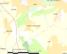 British army, corps and divisional boundaries were changed in early 1916, when divisions from the First Army, Second Army and Third Army were withdrawn to reinforce the Fourth Army on the Somme. On Vimy Ridge, the Berthonval and Carency sectors were transferred to IV Corps (Lieutenant-General Henry Wilson) of the First Army, from XVII Corps (Lieutenant-General Sir Julian Byng) of the Third Army and from the 25th Division to the 47th (1/2nd London) Division, which extended its right flank .75 mi (1.21 km) southwards to P sector.[9] The positions were high along the western slope of Vimy Ridge and down the north-facing slope between Souchez and Givenchy-en-Gohelle. From south to north the communication trenches to the British front line on the ridge were Grange Ave and Lassalle Ave–Royal Ave in P sector. In the Berthonval sector, access was by Central Ave–Cannon Street, Wortley Ave–International Ave, Landwehr Ave and in the Carency sector, the communication trenches were Ersatz Ave–Ersatz Alley, Uhlan and Coburg alleys.[10] Neither side controlled the crest and to the south of the Berthonval sector, the British intended to treat the front line as the main line of resistance to protect Zouave Valley, which rose southwards from the valley of the Souchez river, about 800 yd (730 m) back from the front line. German gunners continually bombarded the Talus de Zouaves (Zouave embankment) in Zouave Valley, which could cut off British contact with the front line.[6] The British could see the Douai Plain behind Vimy Ridge from Loretto Ridge to the north-west but the pit villages dotted around the Lens coalfield made plenty of hides for the German artillery.[11]