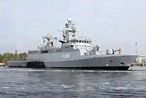 In October 2016 it was announced that a second batch of five more frigates is to be procured from 2022 to 2025.[5] The decision was in response to NATO requirements expecting Germany to provide a total of four corvettes at the highest readiness level for littoral operations by 2018, and with only five corvettes just two can be provided.[6]
