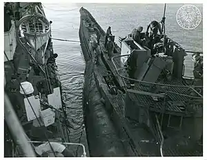 ![]() ORP Krakowiak is preparing for the U-1165 towing operation | |