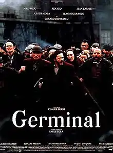 Germinal is a 1993 French epic film based on the 1885 novel by Émile Zola. It was directed by Claude Berri, and stars Gérard Depardieu, Miou-Miou and Renaud. At the time it was the most expensive movie ever produced in France.[3] It was the fourth most attended film of the year in France.