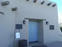 A few years later, after a trip to Switzerland, Webster returned to Phoenix with an unusual cactus and met Gustaf Starck, an engineer who organized the Arizona Cactus and Native Flora Society in 1934.[29][4] In 1936, Webster, now president of the Arizona Cactus and Native Flora Society, asked the state of Arizona for land and $2500 to run the garden.[4] When the state declined, Webster raised the $40,000 needed to establish the garden, including a $10,000 donation of her own.[30][29] In 1938 they got permission from the state of Arizona to use the land, in what had been the Papago Saguaro National Monument, as a botanical garden.[31] The landscape architect Charles Gibbs Adams helped design the plans for the botanical garden, and Webster helped design the layout while she was living at her house in Vermont.[29] The Desert Botanical Garden opened to the public in 1939,[32][33] and included plants donated by Starck, Webster, and others.[34] The Webster Auditorium, named after Gertrude Webster, is on the property of the Desert Botanical Garden and was dedicated on January 21, 1940, with over 1500 people attending the ceremony.[29] During World War II, the garden was tended by a few volunteers, but was not faring well.[4]