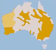 | Distribution of the western gerygone: Lighter shaded area represents non-breeding migration. | |