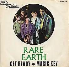 The band wanted to release "Get Ready" as a single, but Motown declined at first, issuing the unsuccessful "Generation, Light Up the Sky" as the band's first single. Finally deferring to the band's wishes in February 1970, Motown released a three-minute edit of the song as a single, which became a hit. "Get Ready" hit No. 2 on the Cash Box Top 100 and peaked at #4 on the Billboard Hot 100. It took up the entire second side of their platinum-selling Motown album, also titled Get Ready. The Rare Earth version of the song also peaked at number twenty on the R&B chart.[5] Today, "Get Ready" is among the most familiar of both the Temptations' and Rare Earth's recordings.