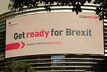 Get ready for Brexit was a campaign launched by the British government on 2 September 2019. It encouraged the public to prepare for the UK leaving the European Union (EU) on 31 October. It ran across television, social media, billboards and other platforms and was the largest government public information campaign in British history.[2]