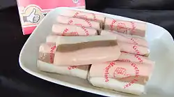 Gethuk is an Indonesian-Javanese dish made from cassava.[1] The cassava is peeled, boiled and mashed. Then it is mixed with grated coconut, sugar and small amounts of salt. Sugar can also be replaced with palm sugar to give it brownish color and more distinctive taste.