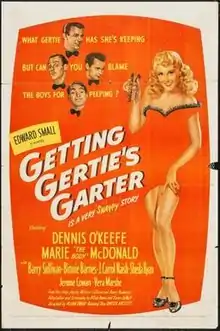 Getting Gertie's Garter is a 1945 American slapstick comedy film written and directed by Allan Dwan, and starring Dennis O'Keefe, Marie McDonald, and Barry Sullivan. The film is based on the 1921 play of the same name by Wilson Collison and Avery Hopwood. The play was previously adapted for the screen as a silent film released in 1927 by Metropolitan Pictures and starred Marie Prevost and Charles Ray.[1]