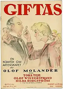 Getting Married (Swedish: Giftas) is a 1926 Swedish silent drama film directed by Olof Molander and starring Olof Winnerstrand, Tora Teje and Hilda Borgström.[1] It is based on the short story collection Getting Married by August Strindberg, specifically the story A Doll's House which he had written is response to Henrik Ibsen's 1879 play A Doll's House.