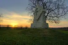 The Gettysburg National Military Park protects and interprets the landscape of the 1863 Battle of Gettysburg during the American Civil War. Located in Gettysburg, Pennsylvania, the park is managed by the National Park Service.[4] The GNMP properties include most of the Gettysburg Battlefield, many of the battle's support areas during the battle (e.g., reserve, supply, and hospital locations), and several other non-battle areas associated with the battle's "aftermath and commemoration", including the Gettysburg National Cemetery.[5] Many of the park's 43,000 American Civil War artifacts are displayed in the Gettysburg Museum and Visitor Center.[6]