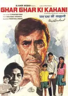 Ghar Ghar Ki Kahani ((Translation|The story of every home}}) is a 1970 Hindi-language drama film directed by T. Prakash Rao.[1] The film stars Balraj Sahni, Nirupa Roy and Om Prakash in lead roles, supported by Rakesh Roshan, Bharathi, Shashikala and others.The remake and adaptation rights of this film are now owned by Glamour Eyes Films.