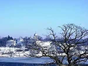 In compensation for the loss of his see, Ghenadie was appointed a lifetime Starets of his place of exile, with a special law passed in 1909.[59] He took an active part in restoring and refurbishing the monastery complex, which had been heavily damaged by time, and intervened on sites outside his jurisdiction. Early on, in 1904, he intervened at Zamfira Monastery, where he demanded that the murals done by painter Nicolae Grigorescu be covered up with tempera artwork—his order was obeyed, and the result remains one of the most controversial acts.[60][61] Some have described it as virtually an act of vandalism, and, 50 years later, the process was reverted on church orders.[60][61] Ghenadie requested, and received, King Carol's patronage for the Căldărușani restoration works (begun in 1908), and hired artist D. Belizarie to recondition its archaic murals.[62] In 1915, he personally oversaw the festive reopening of Căldărușani Church.[63]