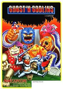 Ghosts 'n Goblins, known as Makaimura (Japanese: 魔界村, lit. "Demon World Village") in Japan, is a platform video game developed by Capcom and released for arcades in 1985. It is the first game in the Ghosts 'n Goblins franchise, and has since been ported to numerous home platforms.