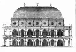 Leoni's early life is poorly documented. He is first recorded in Düsseldorf in 1708, and arrived in England sometime before 1715. Between 1715 and 1720 he published in installments the first complete English language edition of Palladio's I Quattro Libri dell'Architettura, which Leoni entitled The Architecture of A. Palladio, in Four Books.[1] The translation was a huge success and went into multiple editions in the following years (illustration, left) Despite Leoni's often eccentric alterations to Palladio's illustrations, his edition became a main vehicle for disseminating the essence of Palladio's style among British designers. The direct impact of Palladio's text was upon building patrons,[2] for these expensive volumes were out of the reach of most builders, who could consult them only briefly in a gentleman's library. In 1738 Isaac Ware, with the encouragement of Richard Boyle, third Earl of Burlington, produced a more accurate translation of Palladio's work with illustrations which were faithful to the originals, but Leoni's changes and inaccuracies continued to influence Palladianism for generations.[3]