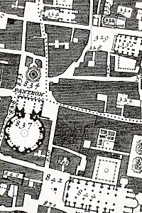 Giambattista Nolli (or Giovanni Battista) (April 9, 1701 – July 3, 1756), was an Italian architect and surveyor. He is best known for his ichnographic plan of Rome, the Pianta Grande di Roma which he began surveying in 1736 and engraved in 1748, and now universally known as the Nolli Map. The map is composed of 12 copper plate engravings that together measure 176 centimetres (69 in) by 208 centimetres (82 in). It was produced and published in response to the commission of Pope Benedict XIV to survey Rome in order to help create demarcations for the 14 traditional rioni or districts.[3] It was by far the most accurate description of Rome produced to date at a time when the architectural achievement of the Papacy was in full flower.