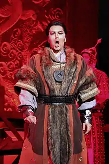 Giancarlo Monsalve Leyton (born 4 March 1982) is a Chilean spinto tenor. He is the Cultural Ambassador of his home town Valparaíso, a UNESCO World Heritage site.[1][2] He is known for his portrayal as Don José in Carmen, Cavaradossi in Tosca, Turiddu in Cavalleria rusticana, the title role in Don Carlos, Riccardo in Un ballo in maschera, Prince Calaf in Turandot and Don Alvaro in La forza del destino