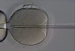 Intracytoplasmic sperm injection of a human oocyte
