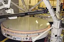 The mirrors are being constructed by the University of Arizona's Steward Observatory Richard F. Caris Mirror Lab.[19] The casting of the first mirror, in a rotating furnace, was completed on November 3, 2005, but the grinding and polishing were still going on 61⁄2 years later when the second mirror was cast, on 14 January 2012.[20][21] A third segment was cast in August 2013,[11][22] the fourth in September 2015,[23] the fifth in 2017,[24] and the sixth in 2021.[10] The casting of each mirror uses 20 tons of E6 borosilicate glass from the Ohara Corporation of Japan and takes about 12–13 weeks.[25] After being cast, they need to cool for about six months.[11]