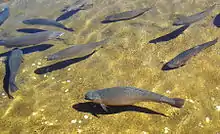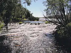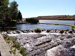 Today, some of the spring water is bottled annually for human consumption and some of the discharge is used for a trout hatchery. The hatchery is a Montana state trout hatchery named Giant Springs Trout Hatchery and raises mostly Rainbow Trout.[5] The spring serves as the headwaters of the 200-foot (61 m)-long Roe River, once listed as the shortest river in the world according to Guinness Book of World Records. The river flows into the Missouri River which is near the spring and borders its state park.