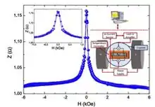 Because of the huge variations observed in the magnetic field dependence of the magnetoimpedance it was named giant magnetoimpedance.[9] Due to the high sensitivity of the sensors using the GMI effect, they have been used in compasses, accelerometers, virus detection, biomagnetism, among other applications.[10][11][12]