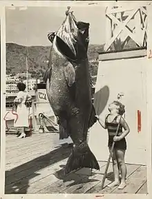 Recreational fishing of the giant sea bass began in the late 19th century.[9]: 150 Caught off the Central and Southern California coasts in the 20th century, the peak catch of the giant sea bass was in 1932.[6] Giant sea bass were once a relatively common inhabitant of Southern California waters, yet in the 1980s, it was facing the threat of local extinction off the California coast.[10]