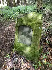 At the foot of the trees stands a memorial to Heinrich Hagge, who worked in this forest estate from 1875 to 1904.