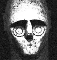 Still in the time-frame of the Prenuragic age, but in this case during the Eneolithic period, there is a remarkable production of "Laconi-type" statue-menhirs or statue-stelae, assigned to the Abealzu-Filigosa culture and characterized by a uniform tripartite scheme encompassing, from top to bottom: a stylized 'T'-shaped human face; the depiction of the enigmatic capovolto (the capsized) in the kind of trident capovolto; and a double-headed dagger in relief.[11][20]