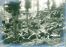 Austrian soldiers during WWI resting in the woods beneath Monte Maronia