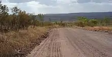 The road is a former cattle route that stretches in an east–west direction almost 660 kilometres (410 mi) through the Kimberley between the towns of Derby and the Kununurra and Wyndham junction of the Great Northern Highway.[1] Like its namesake, which does not actually cross the road but runs nearby at 16°06.108′S 126°31.075′E,[2] it is named after geologist and explorer Andrew Gibb Maitland. The Gibb River Road is one of the two major roads which dissect the Kimberley region—the other being the extreme northern section of Great Northern Highway which runs further to the south.