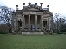 The Banqueting House was built in 1746, and is an early example of Gothic Revival architecture, of the early form often called "Gothick". It has now been restored and is available for letting by the Landmark Trust, who now own it.[9]