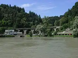 Since 1909, the Gießenbachtal at the exit of the Stillensteinklamm at the mouth of the Gießenbach into the Danube is crossed by the Donauuferbahn railway by means of a very high seven-arched viaduct.
