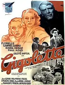 Gigolette is a 1937 French drama film directed by Yvan Noé and starring Florelle, Gabriel Gabrio and Rosine Deréan.[1]