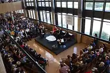 Thursday October 22, 2015, at 17:00, was held in the Library of North Aulario a round table with the participation of Wikipedia, Princess of Asturias Award for International Cooperation. The conversation focused on digital and social entrepreneurs, based on the history of Wikipedia. Jimmy Wales stepped in, Patricio Lorente and Lila Tretikov Wikimedia Foundation, the event was moderated by Marian Garcia and Ramon Rubio, teachers Gijón Polytechnic School of Engineering.