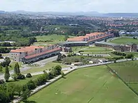 Panoramic view Revillagigedo palace, next to Pelagius statue Aerial view of Gijón Universidad Laboral (university building) | |