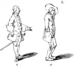 Austin describes gesture as the "action and position of all the parts of the body" (133) and attributes to gesture the power to convey meaning. During the 18th century, speakers preferred the natural style of gesture but Austin warns against this style saying that speakers who rely on nature run the risk of displaying "the untutored extravagance and uncouth motions of the vulgar" (138 see Plate 2, Figures 8 and 9 below). By following Austin's guidelines, speakers could improve their delivery by matching their gestures to their words. Austin advises his students, however, that gesture should be used with restraint and only when appropriate (137).