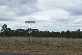 ![]() Road sign at the entry to the site of the former village at Gilgunnia (2017). | |||||||||||||||