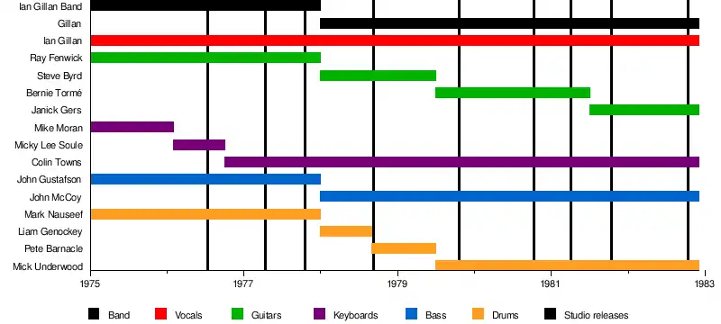 ![]() Ian Gillan, frontman and leader of the band, in 1983 | |