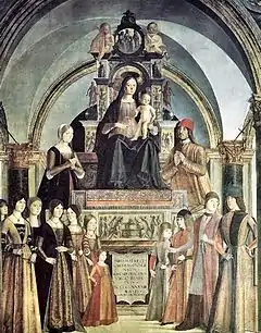 In 1463 Ginevra became a widow, and a year later married Giovanni II Bentivoglio, becoming among other things, his counsellor.[2] Probably a relationship already existed between the two.[3] Ginevra had sixteen children with her husband, of whom five died in infancy. The others were: