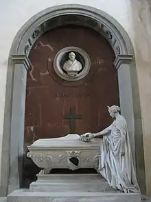 He returned to his studies and commenced his great Storia della Repubblica di Firenze; but he followed political affairs with great interest, and helped to convince Lord John Russell, who stayed with him in 1859, of the hopelessness of the grand duke's position. After Leopold's second flight (27 April 1859) a Tuscan assembly was summoned, and Capponi elected member of it. He voted for the grand duke's deposition and for the union of Tuscany with Piedmont. King Victor Emmanuel made him senator in 1860. His last years were devoted almost exclusively to his Florentine history, which was published in 1875 and achieved an immediate success. This was Capponi's last work, for on 3 February 1876 he died at the age of eighty-four.[2]