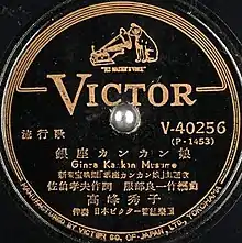 "Ginza Kankan Musume" (銀座カンカン娘, lit. "Ginza Kankan Girl") is a popular song composed by Ryōichi Hattori, with lyrics by Takao Saeki.[1] It was recorded by Hideko Takamine and released in April 1949.[2]