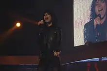 The album Senza paura debuted at the first position of the Italian chart,[14] and was certified double platinum disk (with more than 120.000 copies). In 2014 it received a new nomination at the MTV Europe Music Awards in the category "Best Italian Act".[15] In October 2014, the singer released Senza paura - Limited Gold Edition, containing a double CD: one with the same tracks as the recorded album, and an extra CD with live content from her 2014 tour Senza Paura; as well as a DVD containing extra content from her live show, the official music videos for her singles (Quando una stella muore, Non mi ami, Io fra tanti) and some unreleased backstage material.[16]