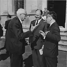 Enzo Martinelli described Giovanni Battista Rizza as a passionate researcher with a "strong intellectual force",[27] and his scientific work as rich of geometrical ideas, denoting his strong algorithmic ability.[28] According to Martinelli, Rizza is also a skilled organizer:[29] his ability in organizational tasks is also acknowledged and praised by Schreiber (1973, p. 1), who also alludes the positive opinions of colleagues and students alike about his involvement in research, teaching and administrative duties at the mathematics department of the University of Parma.