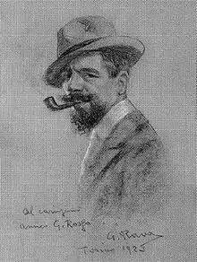 In 1911–1912, he traveled to Libya, and in 1920–1921 to Latin America. In 1921 he displayed at the Circolo degli Artisti of Turin some paintings on the Vedute of Alba, a type of subject he would continue to address throughout his career.[1]