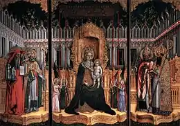 Giovanni d'Alemagna and Antonio Vivarini ran an shop in Venice that specialized in multi-tiered, multi-paneled altarpieces and fanciful Gothic frames, which they subcontracted to various woodworkers.[2]