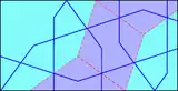 Girih patterns are very likely to be all over the walls of some Islamic architectures. The decorating lines connect to each other and form a continuous network across the entire tiling with edges combine together. In addition, girih patterns vary a lot on the surface, with different geometric shapes including decagons, hexagons, bowties and rhombuses. Among all these patterns, a special technique is shared: "self-similar transformation". The mapping is completed by using this freedom to eliminate the edge difference of these patterns and reduce the edge mismatches to the lowest degree.[21] The extensive use of Girih for interior decoration corresponds to Islam belief. The repetitive patterns of Girih are capable of expanding in every direction, thus Girih has an indefinite nature. This characteristic resembles Muslim's belief that human, who is not the measure of the world, can never comprehend the "infinite meaning of the world" created by the un-definable god.[27] The Girih patterns also have visual function of helping viewers to transcend the monocular vision as the viewers shifting their views according to the underlying schemes.[11]